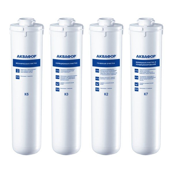 Комплект сменных модулей глубокой очистки. Оптимален для мягкой воды. В условиях жесткой воды он полностью выполняет функцию глубокой очистки от вредных примесей, однако не снижает минерализацию. Поэтому, если при кипячении на нагревательных элементах образуется белый налет, рекомендуем рассмотреть специализированный комплект с умягчающим модулем для глубокой очистки воды.
