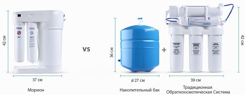 Благодаря эффективности DWM-101S Мориона Вы расходуете до 2 раз меньше воды. В традиционных осмотических фильтрах для получения одного литра чистой воды тратится до 16 литров воды, которая сливается в дренаж. В Аквафор DWM-101S это соотношение удерживается на уровне 1:4.